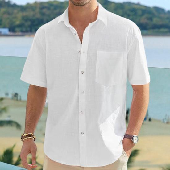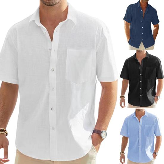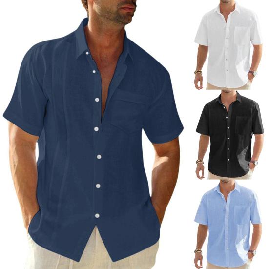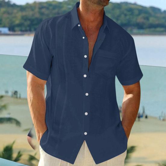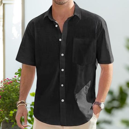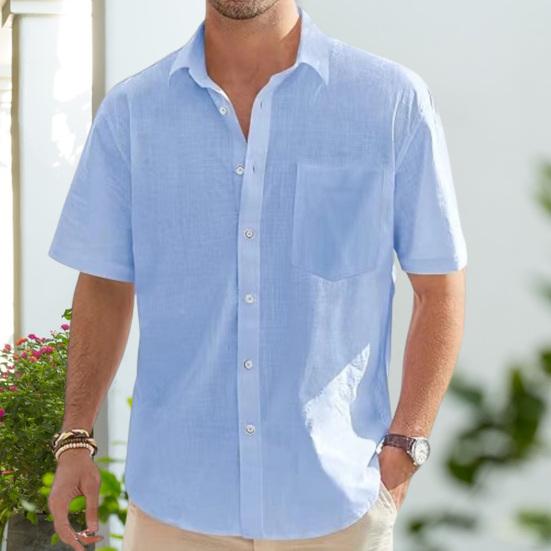 Представляем нашу мужскую рубашку с коротким рукавом из хлопка и льна — универсальное дополнение к вашему гардеробу.. Эта рубашка однобортная, с несколькими пуговицами, что позволяет застегивать ее по мере необходимости..