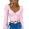 Женские топы с квадратным воротником, пышная футболка с длинным рукавом, цветочный декор, сплошной цвет, приталенная футболка