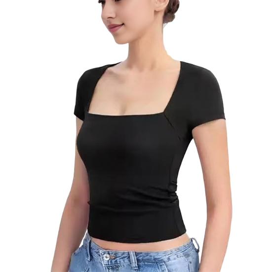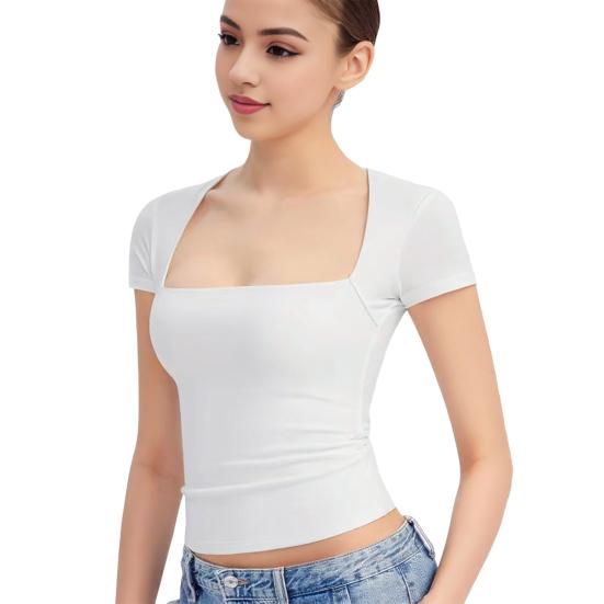 Благодаря квадратному дизайну воротника эта женская футболка-пуловер изменит вашу стройную шею и линии лица.