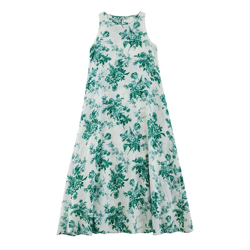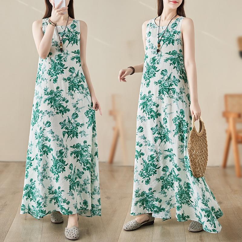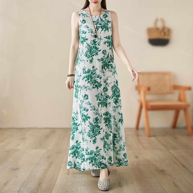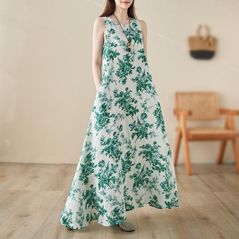 DIMANAF 2024, женское летнее платье, женское длинное платье с цветочным принтом, льняное платье без рукавов, зеленая одежда с цветочным принтом