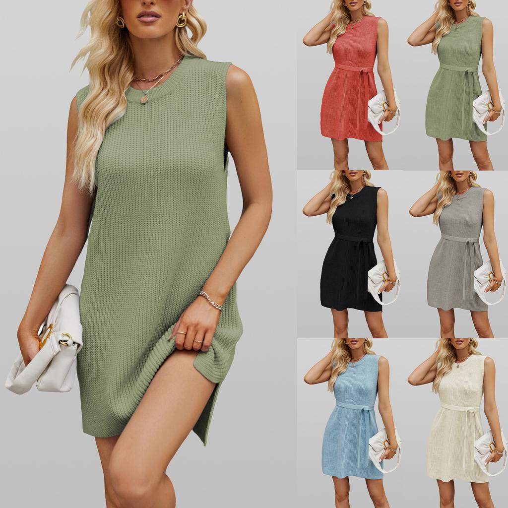Летний однотонный жилет без рукавов с круглым вырезом, повседневные свободные женские платья большого размера