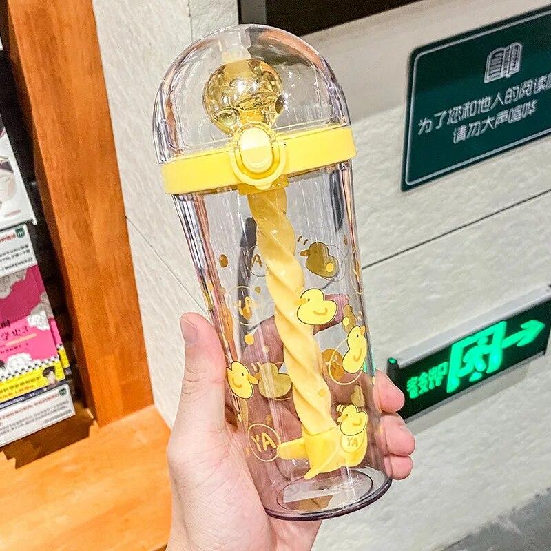 500 мл мультяшная милая чашка для смешивания, индивидуальная творческая студенческая детская соломенная чашка для девочек, пластиковая чашка для воды в форме сердца