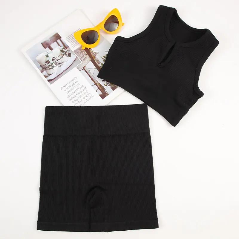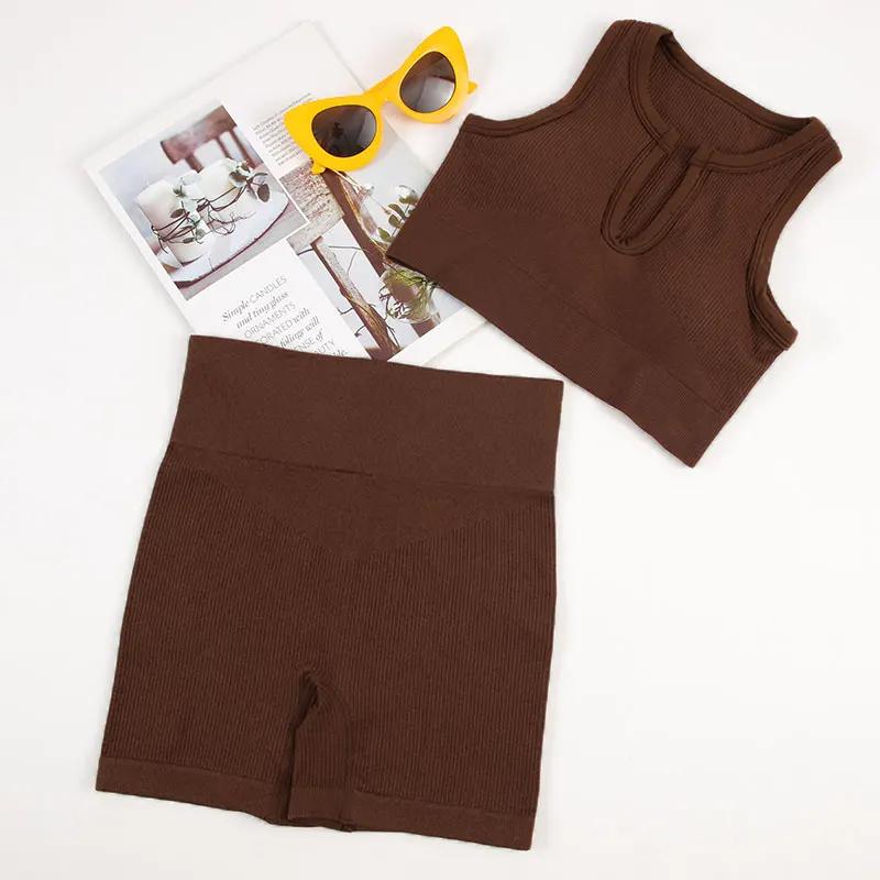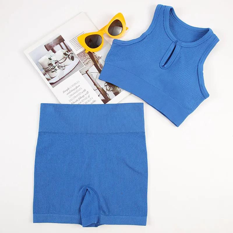 Женский спортивный комплект, экипировка для йоги, бесшовный фитнес-костюм, бюстгальтер для бега с велосипедными шортами, тонкая эластичная спортивная одежда