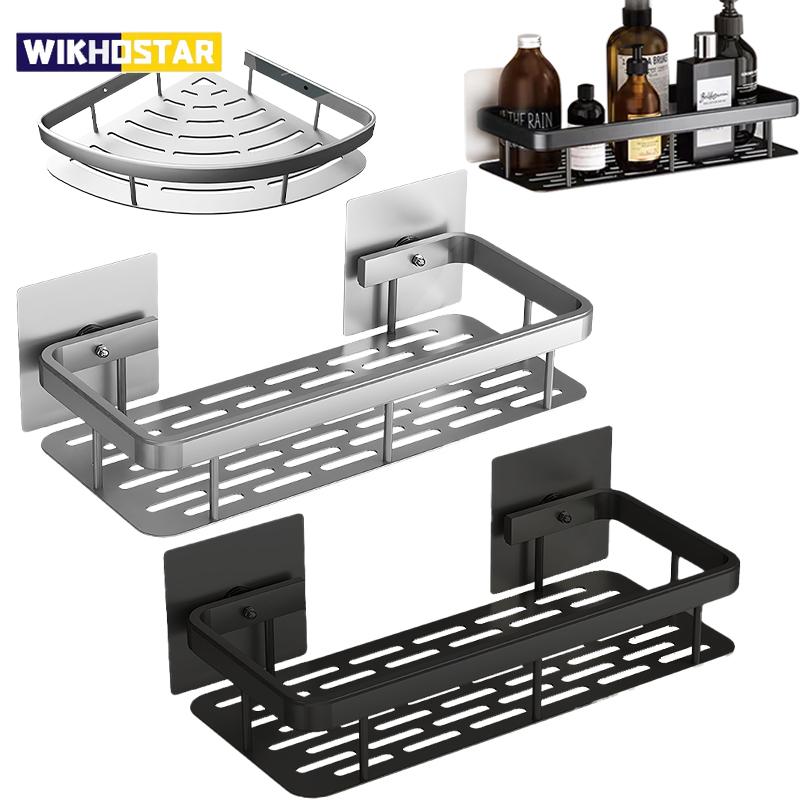 Настенное крепление для ванной комнаты, держатель для хранения шампуня и макияжа, аксессуары для ванной комнаты, настенная полка без сверления, держатель для душа для туалета