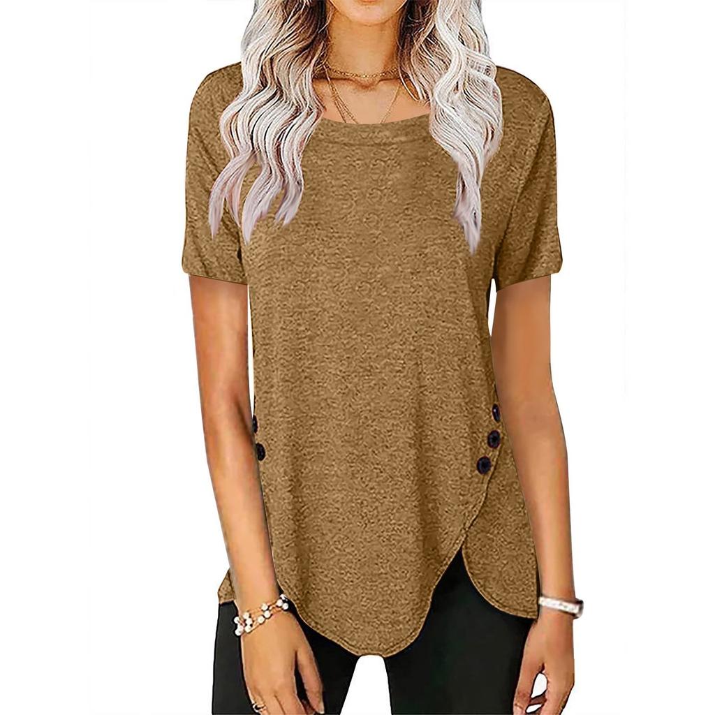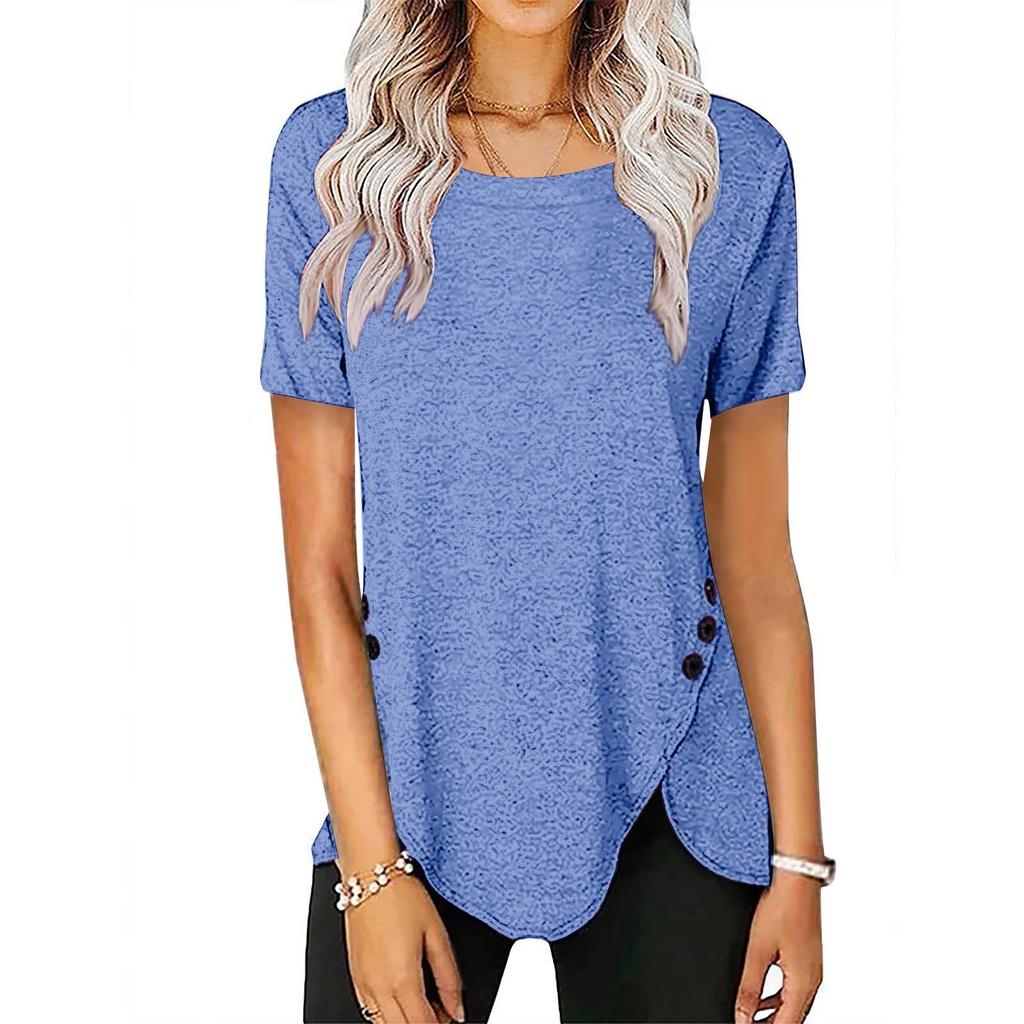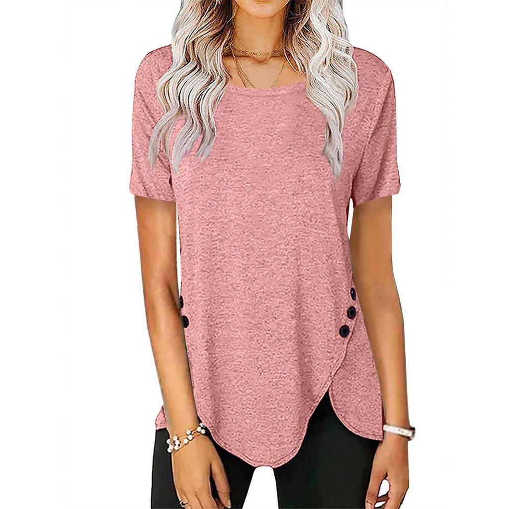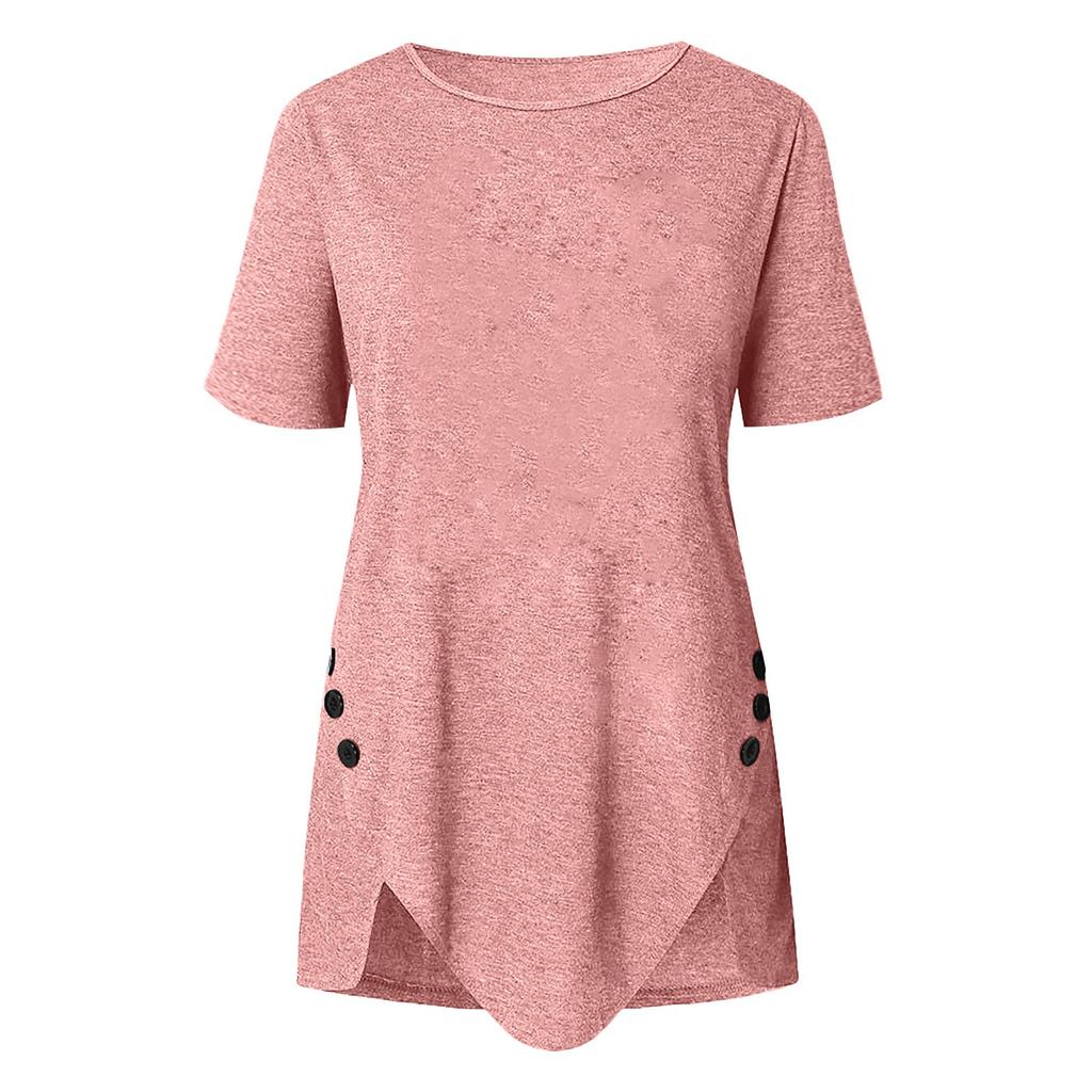 Модная женская повседневная однотонная свободная футболка с коротким рукавом и пуговицами