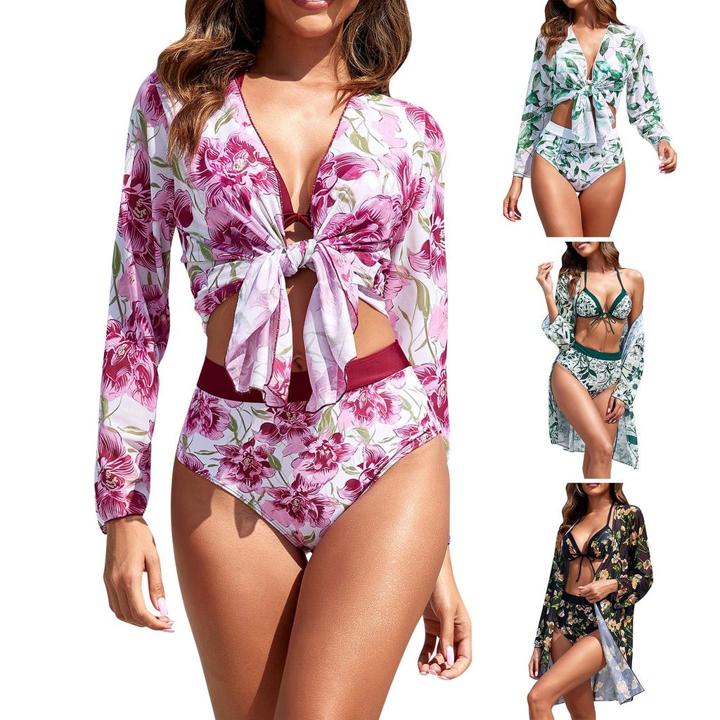 Женский сексуальный бикини, солнцезащитный халат, купальник с принтом, комплект из трех предметов — купить товар онлайн с бесплатной доставкой по всему миру!