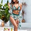 Женский сексуальный бикини, солнцезащитный халат, купальник с принтом, комплект из трех предметов