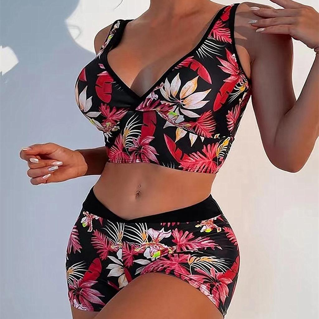 Женский комплект бикини с высокой грудью и бретелями с принтом, двухсекционный купальник