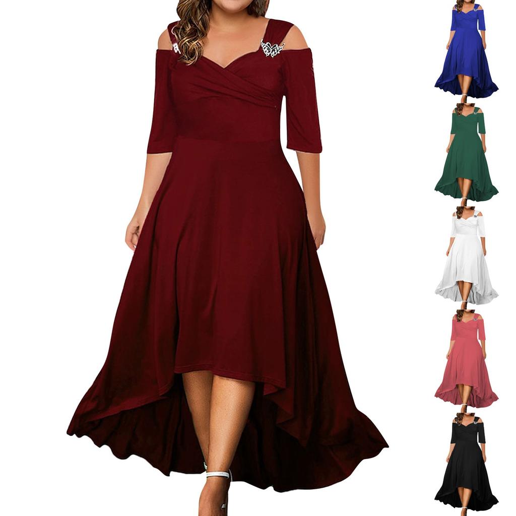 Женское свободное повседневное сексуальное однотонное платье с открытыми плечами и половиной рукавов большого размера