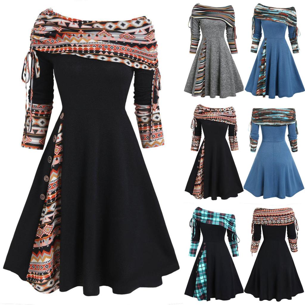 Платье с трансформируемым вырезом в полоску и расклешенным силуэтом с длинными рукавами для женщин — купить товар онлайн с бесплатной доставкой по всему миру!