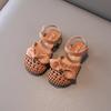 Летние детские сандалии, плетеные шлепанцы с бантом для девочек, возраст 21–30 лет, стильная детская обувь бежевого и хаки с закрытым носком, стильная детская обувь на липучке