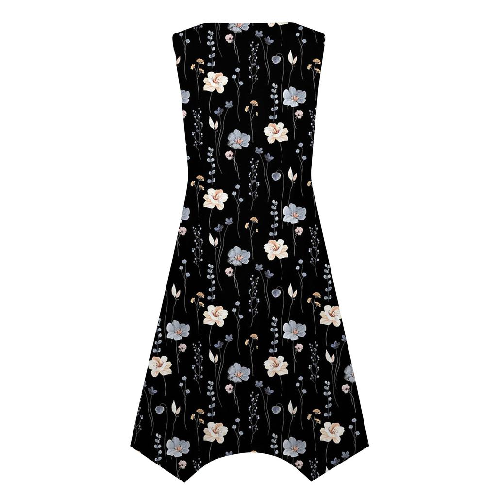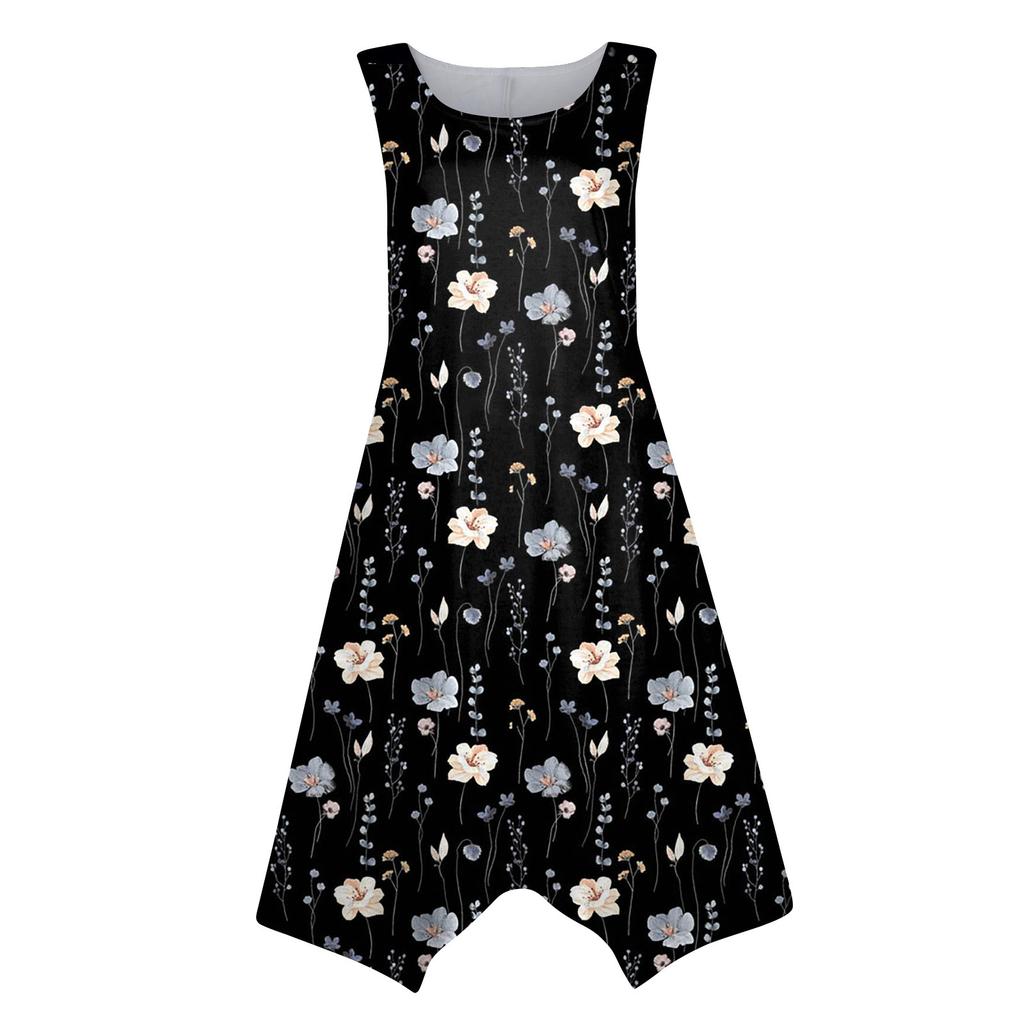 Характеристики: без рукавов, круглый вырез, свободный, длинный расклешенный край, непозиционирующийся принт, милый мультяшный дизайн