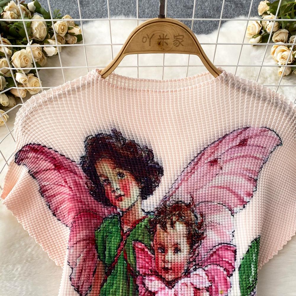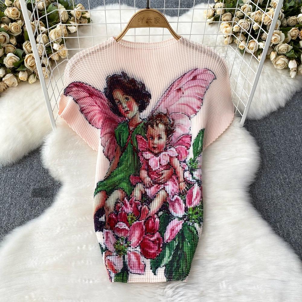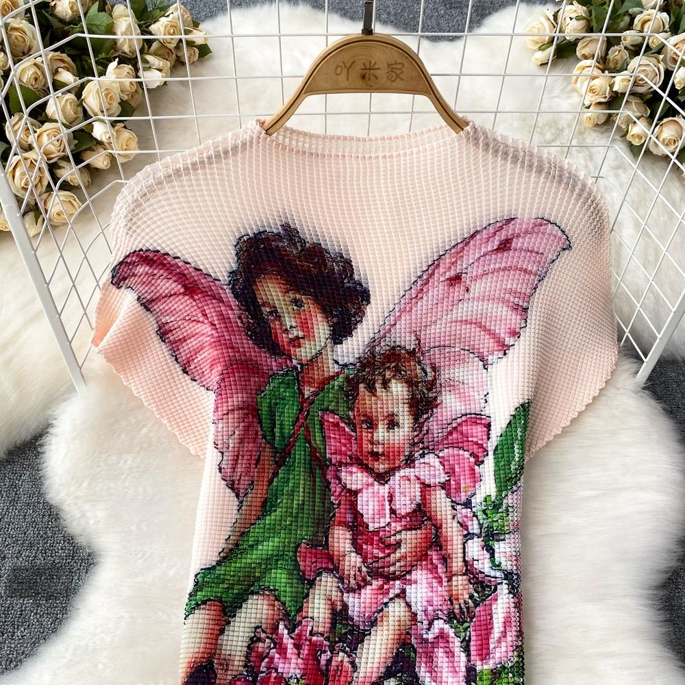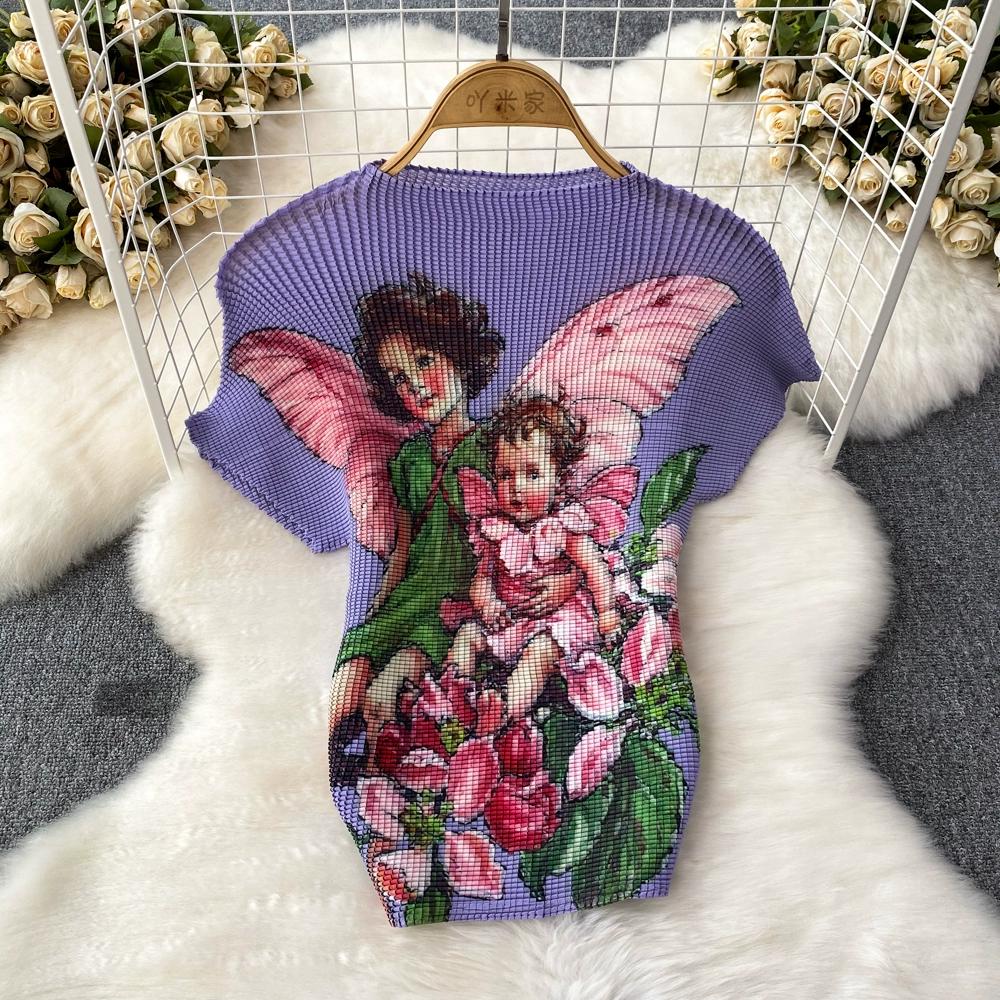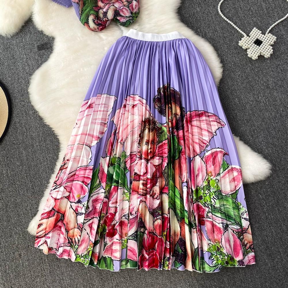 Новый летний женский брендовый дизайнерский комплект с эластичной складкой и принтом из двух предметов, модная верхняя блузка с короткими рукавами и длинная плиссированная юбка-миди, наряды
