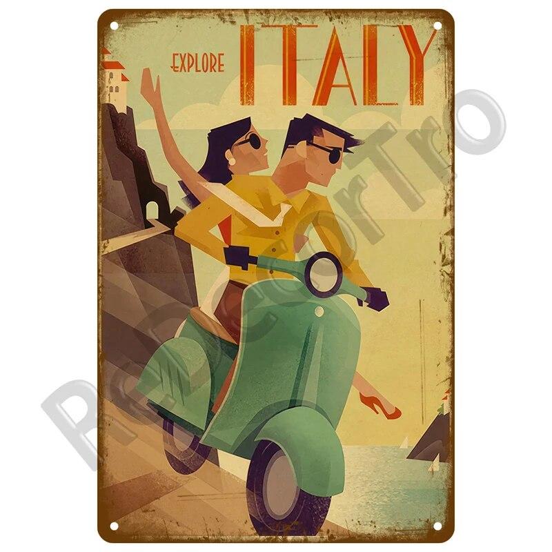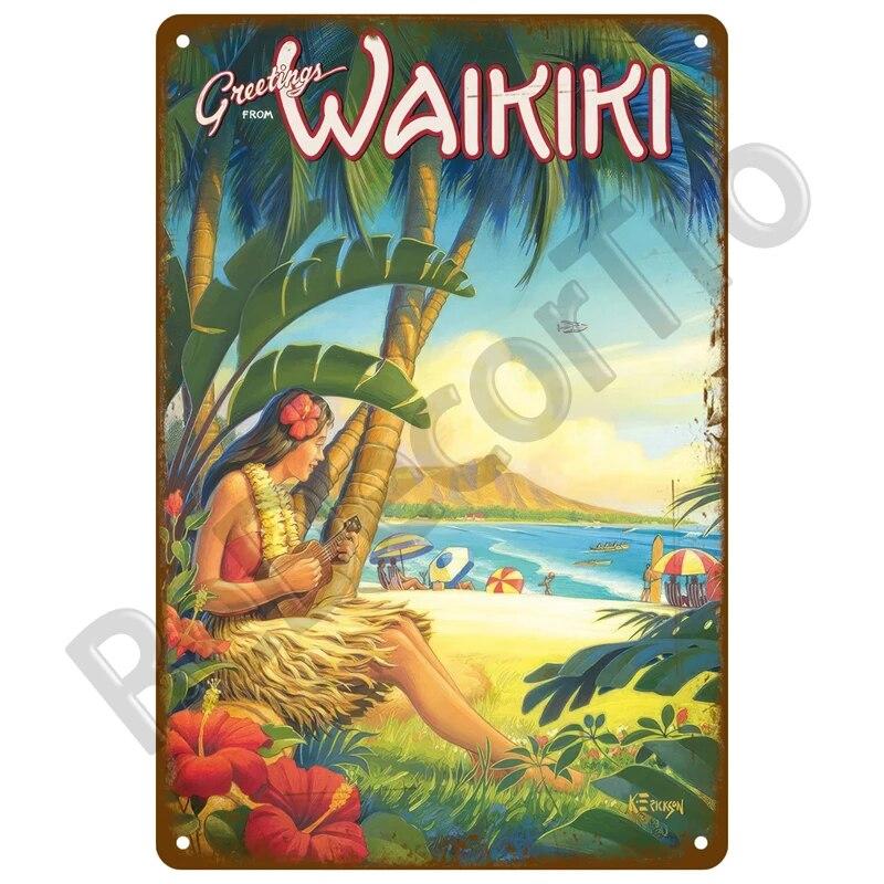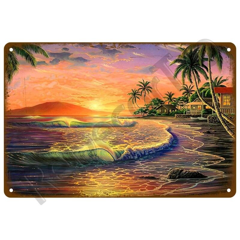 Винтажные летние пляжные металлические вывески, знаменитый городской пейзаж, постер, жестяная вывеска, ретро настенный художественный декор для гостиной, дома, на берегу моря