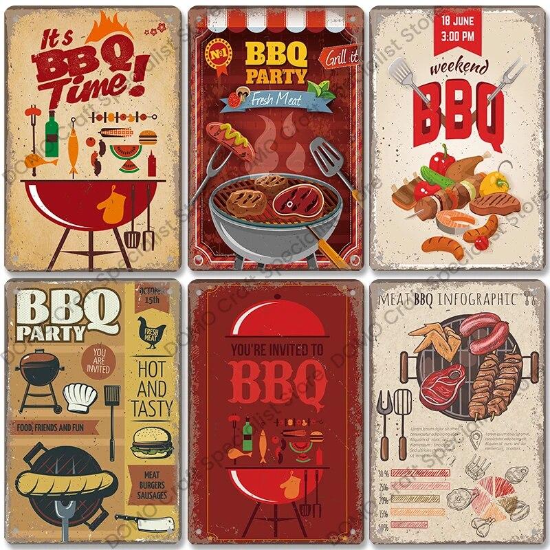 Винтажные таблички для барбекю, металлические оловянные таблички, гриль, мясо, стейк, колбаса, ретро металлическая пластина, настенный декор, вечерние барбекю, магазин, столовая — купить товар онлайн с бесплатной доставкой по всему миру!