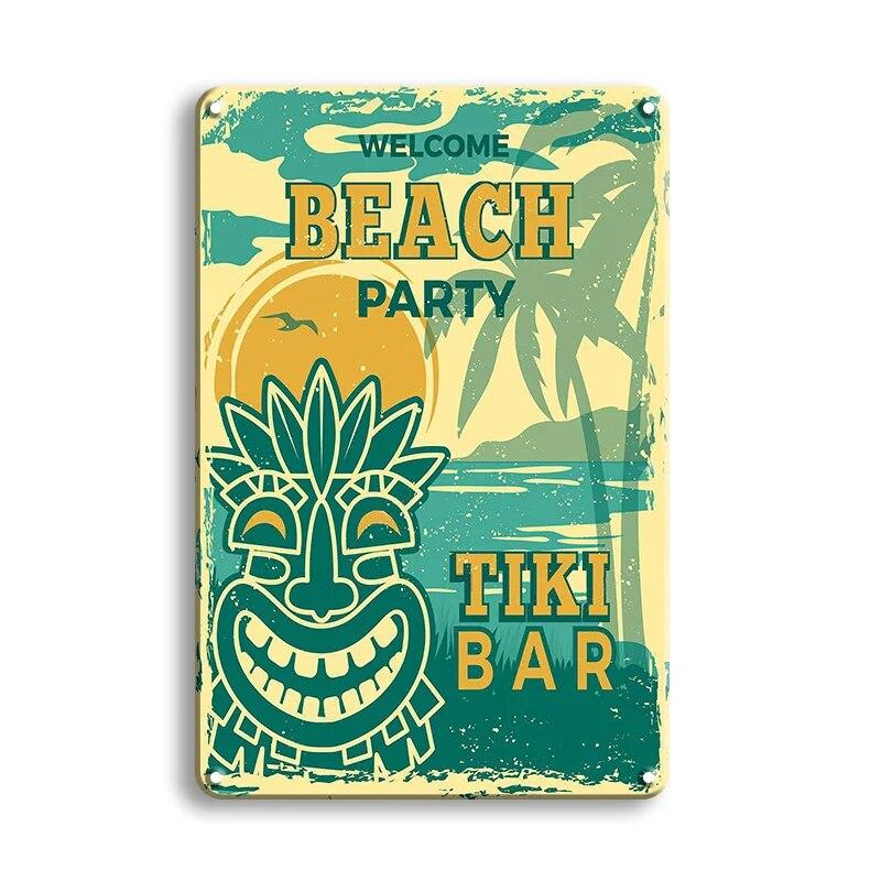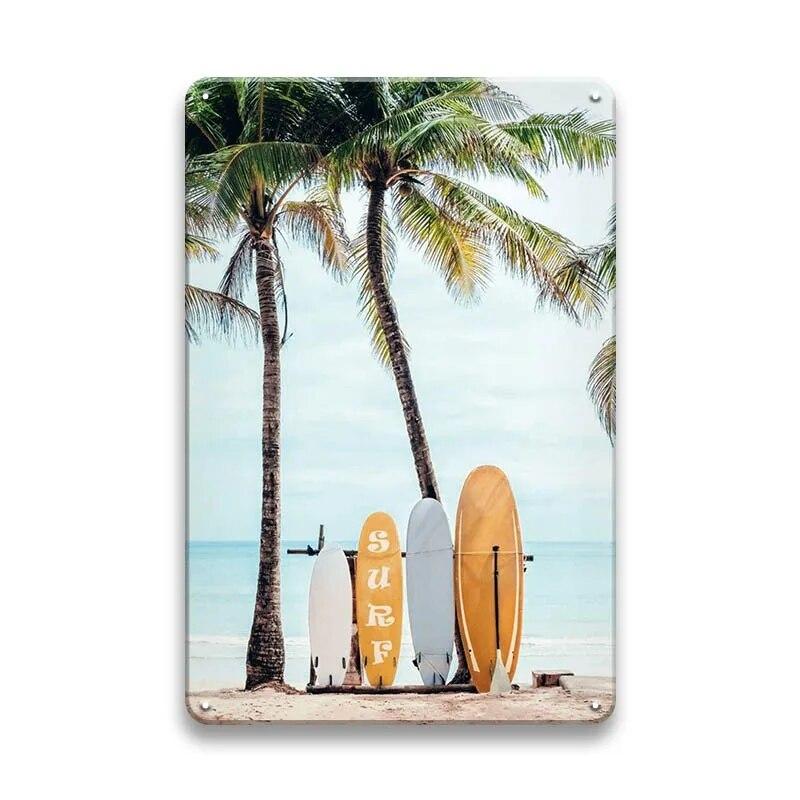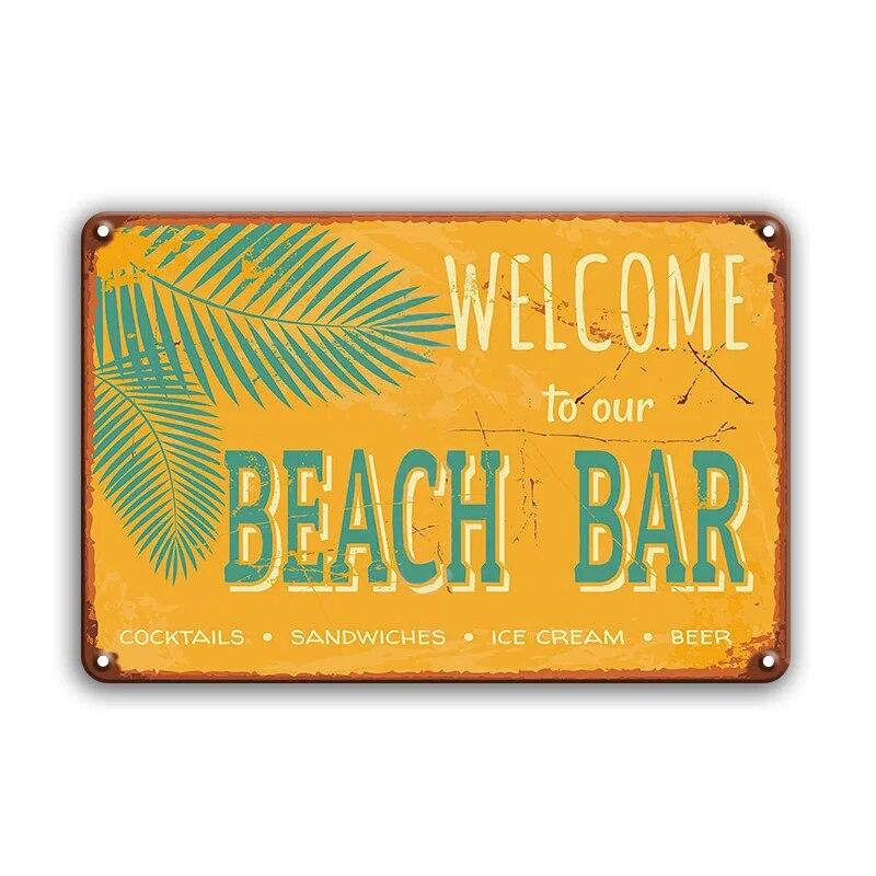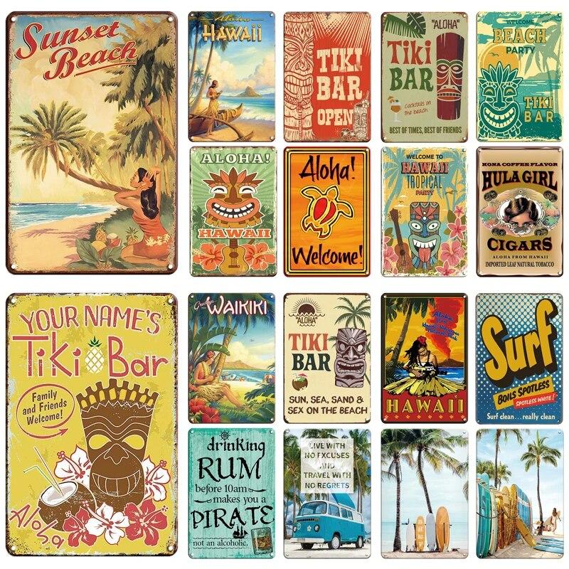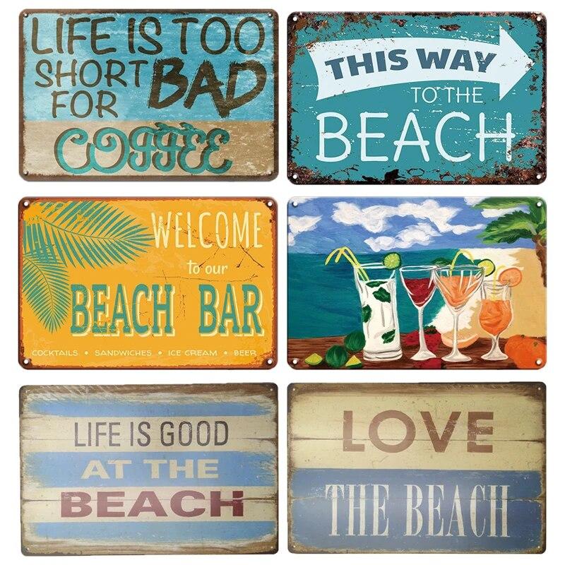 Пляжная жестяная вывеска, винтажный постер, летняя металлическая пластина, художественный настенный декор для Тики-бара, пляжного дома, приморского клуба серфинга, настенная жестяная вывеска