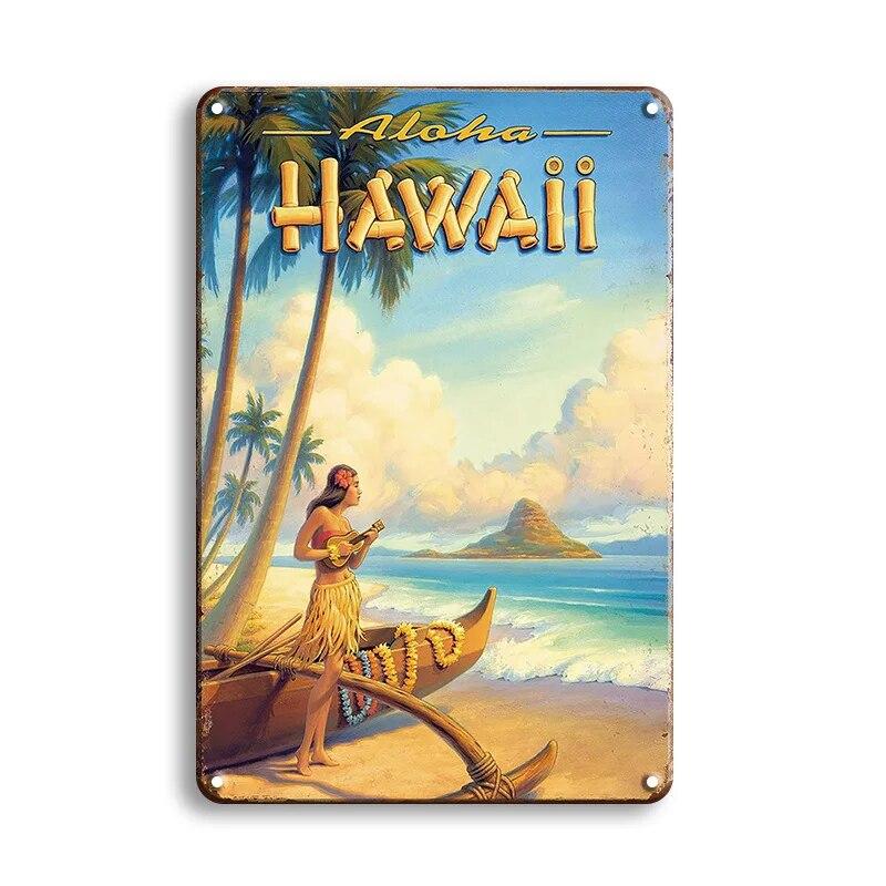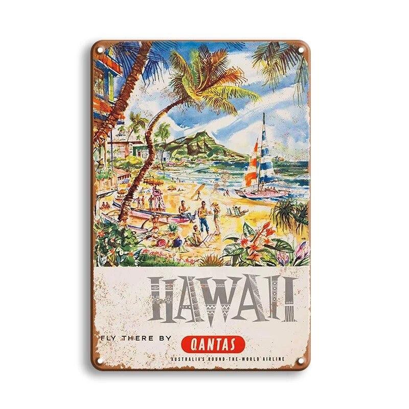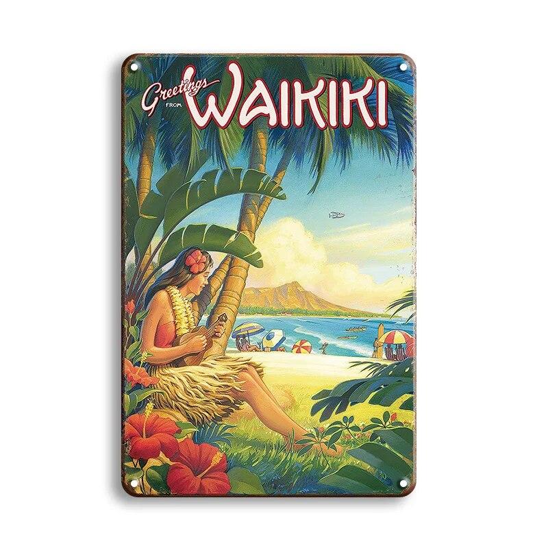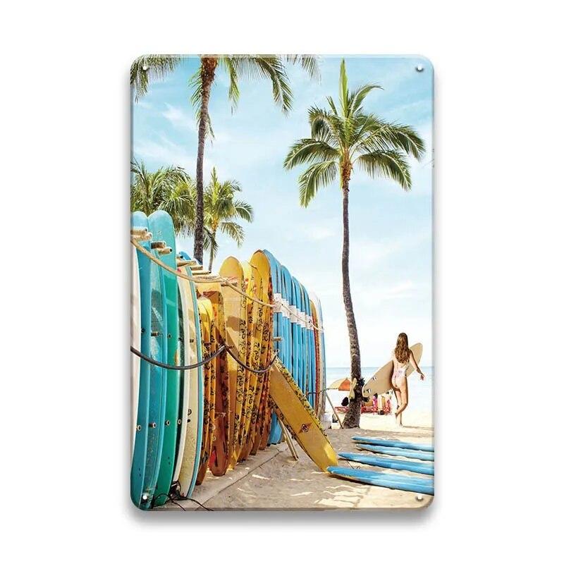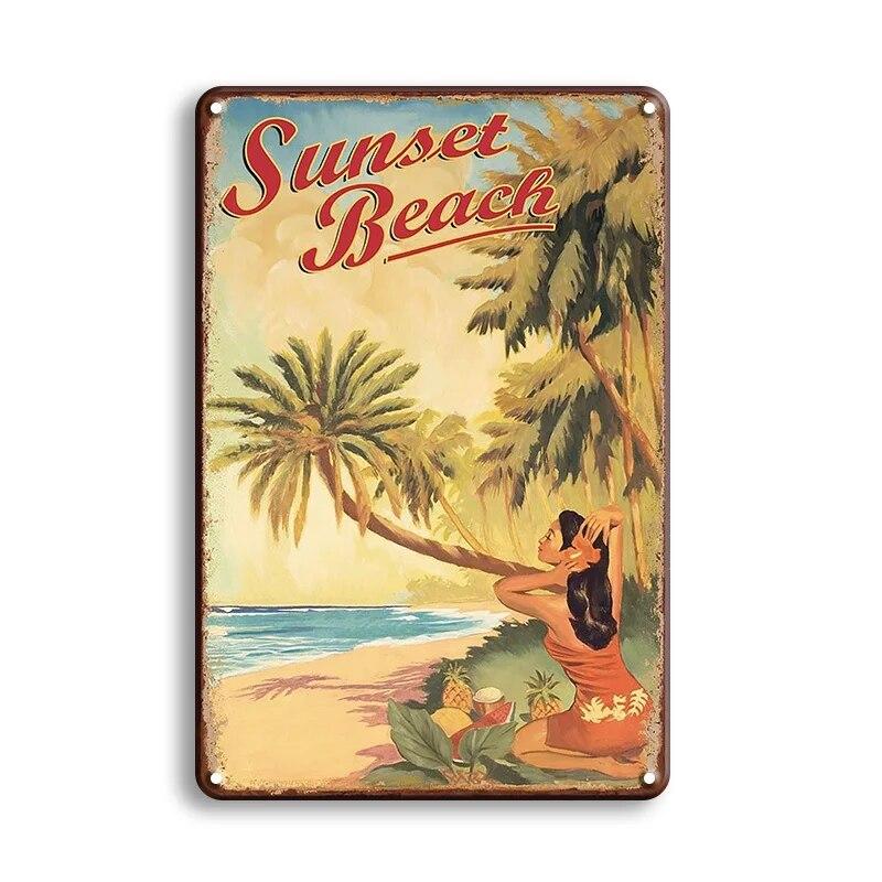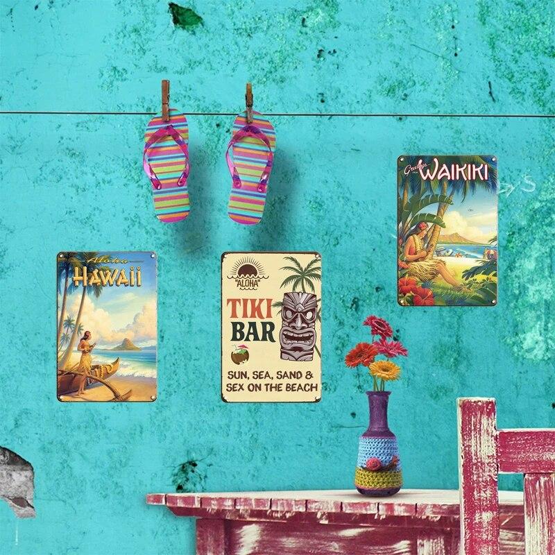 Пляжная жестяная вывеска, винтажный постер, летняя металлическая пластина, художественный настенный декор для Тики-бара, пляжного дома, приморского клуба серфинга, настенная жестяная вывеска
