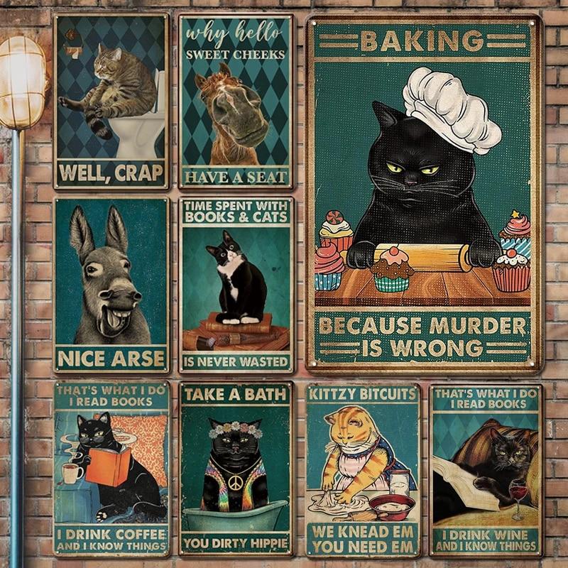 Винтажные металлические плакаты с черным котом, жестяная вывеска, мой Господь, настенные панно, забавные украшения, настенная живопись, модный стиль, домашний железный декор — купить товар онлайн с бесплатной доставкой по всему миру!
