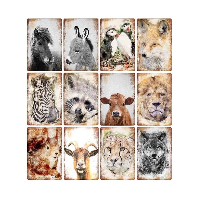 Ферма Decoratio Лев Лошадь Тигр Овца Животное Домашнее животное Знак свободного выгула Плакат Металлические настенные художественные тарелки Железная живопись Домашний декор 20x30 см
