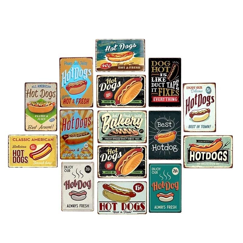 Хот-доги Ретро жестяная вывеска Хот-дог металлический плакат винтажная доска фаст-фуд магазин в отеле Настенный декор 20x30 см — купить товар онлайн с бесплатной доставкой до всему миру!