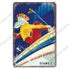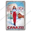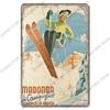 Лыжный спортивный плакат, винтажная металлическая табличка, знаки, горные лыжи, красота, металлическая жестяная пластина, ретро настенный декор для лыжного клуба, бара, паба, дома