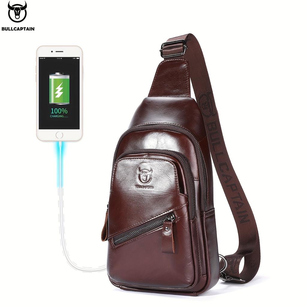 Мужская кожаная нагрудная сумка BULLCAPTAIN, многофункциональная сумка-мессенджер с USB-зарядкой большой емкости, модная повседневная сумка-мессенджер — купить товар онлайн с бесплатной доставкой по всему миру!