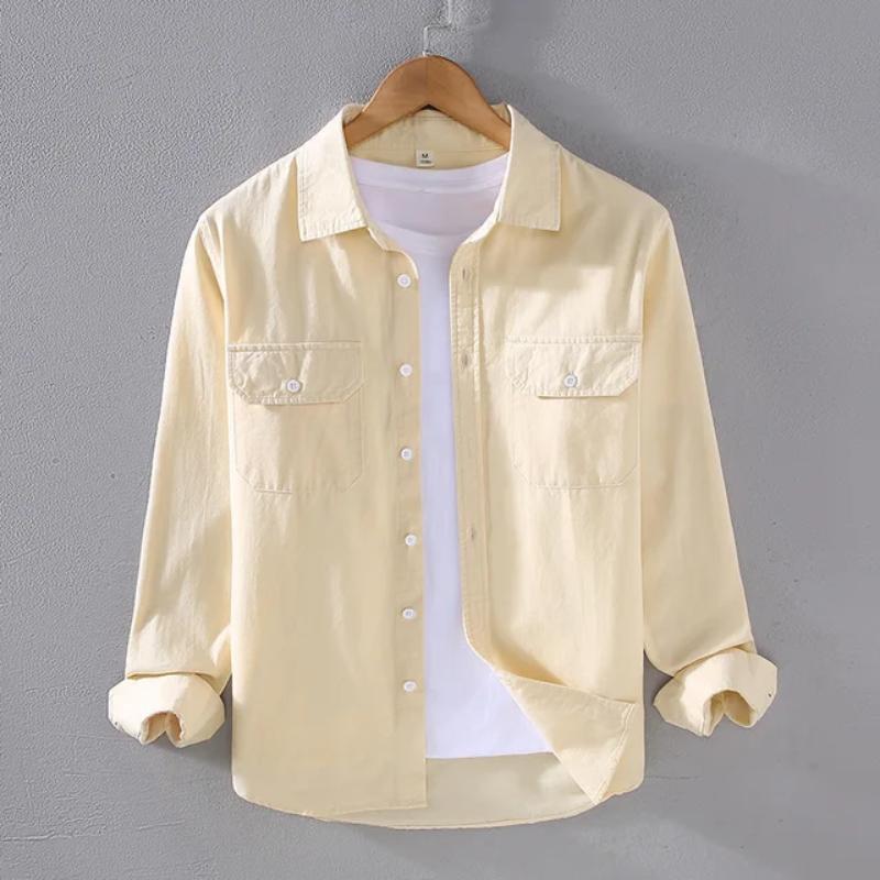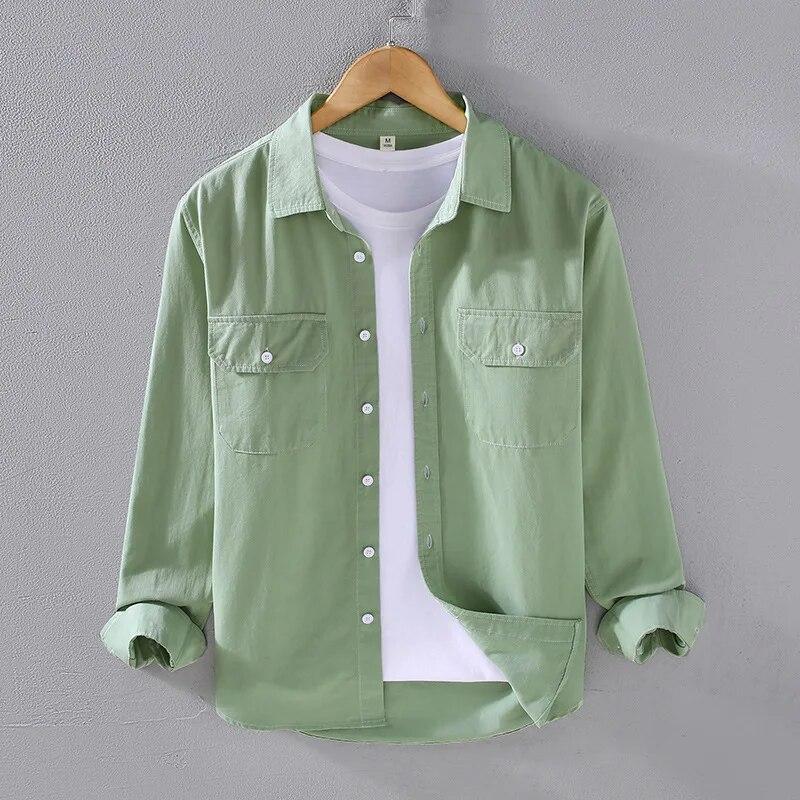 Рубашки карго в американском стиле для мужчин, весна-лето, чистый хлопок, длинный рукав, с двойными карманами, мягкие и удобные повседневные топы