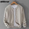 Мужские куртки из хлопкового льна в стиле ретро, мужская одежда, весенняя спортивная бейсбольная одежда, повседневная куртка, однотонная куртка с воротником-стойкой и пуговицами