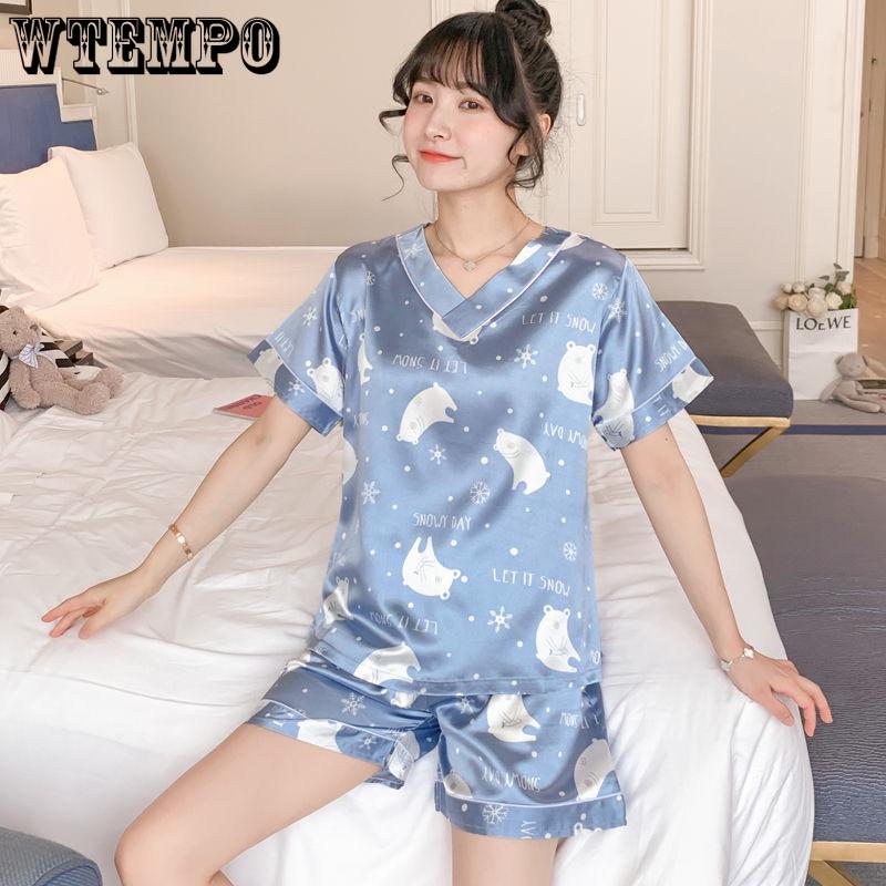 Костюм из двух предметов, милые летние пижамы из тонкого ледяного шелка, женские летние шелковые пижамы с короткими рукавами — купить товар онлайн с бесплатной доставкой по всему миру!