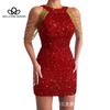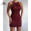 Весна-лето, новая мода, сексуальное платье с вырезом и кисточками на бедрах, с блестками, в европейском и американском стиле, вечернее платье со средней талией