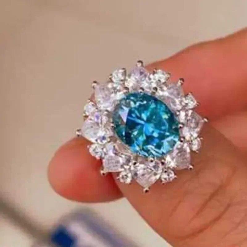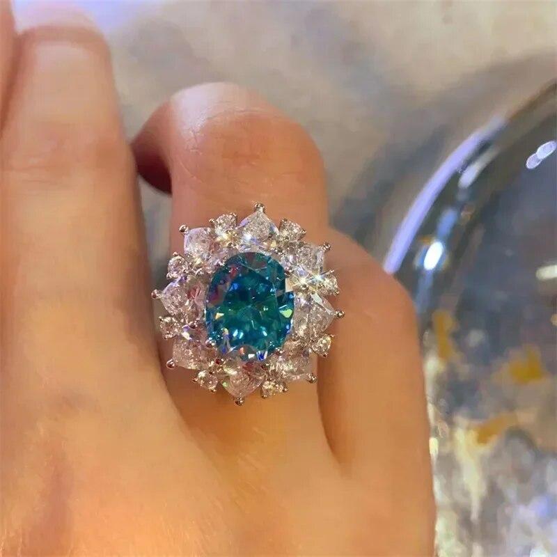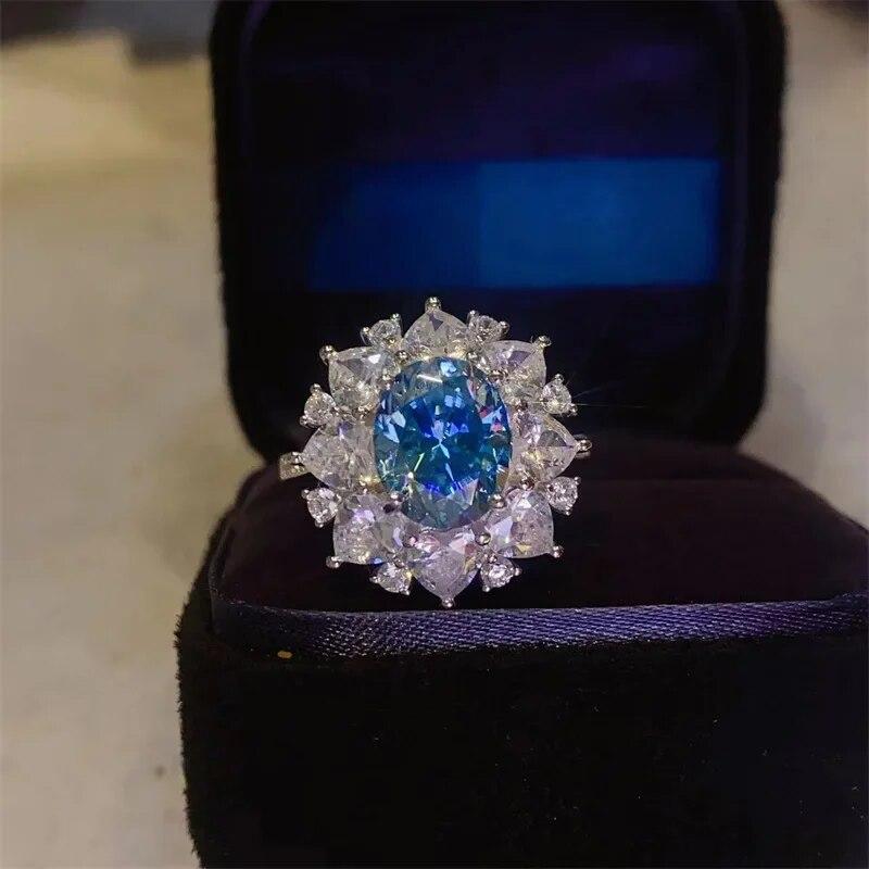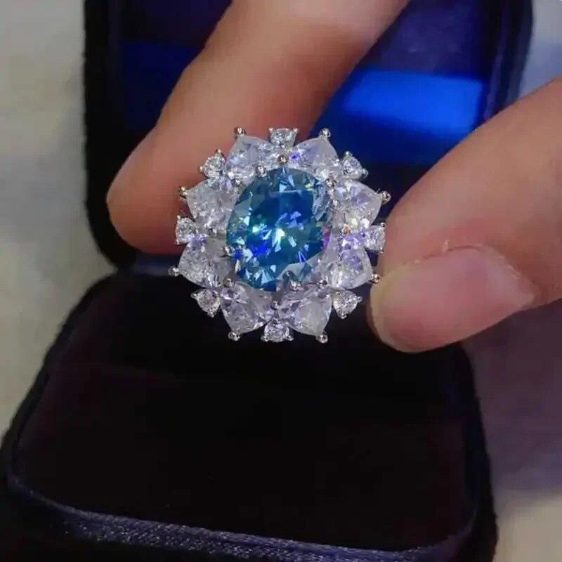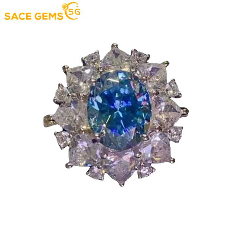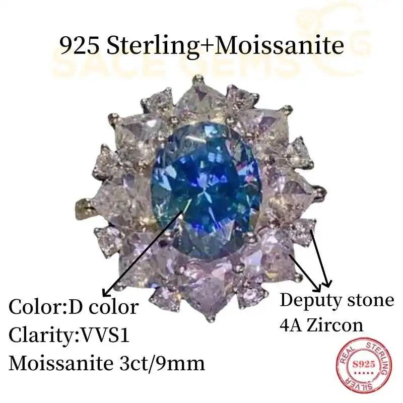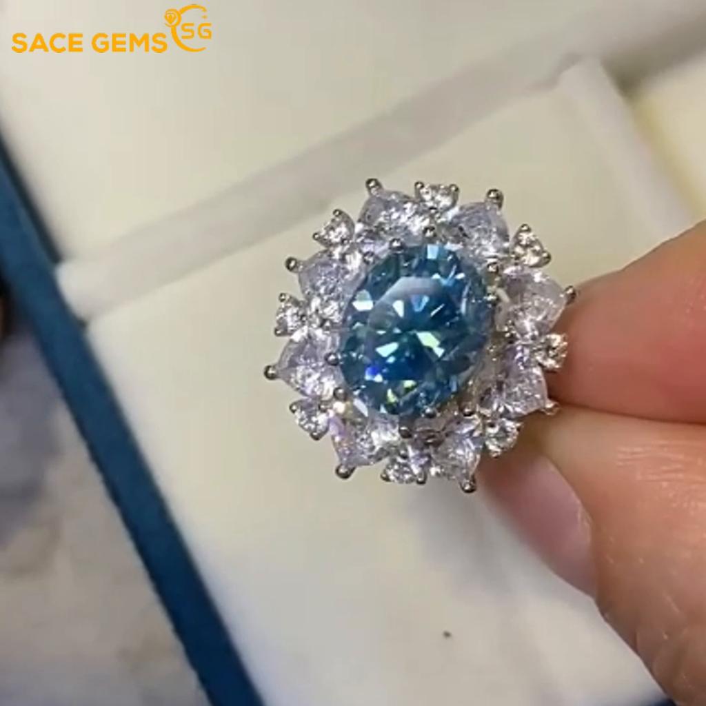 Сертифицированное SACEGEMS GRA кольцо с синим муассанитом 3 карата VVS1 Lab с бриллиантом, пасьянс, кольцо для женщин, обручальное кольцо, ювелирные изделия