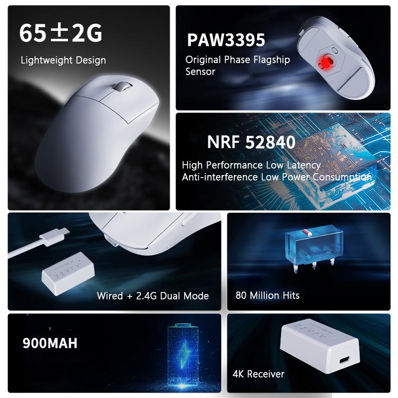 Ajazz Беспроводная проводная двухрежимная игровая мышь AJ199, игровая игровая мышь paw3395, легкий ноутбук 4K