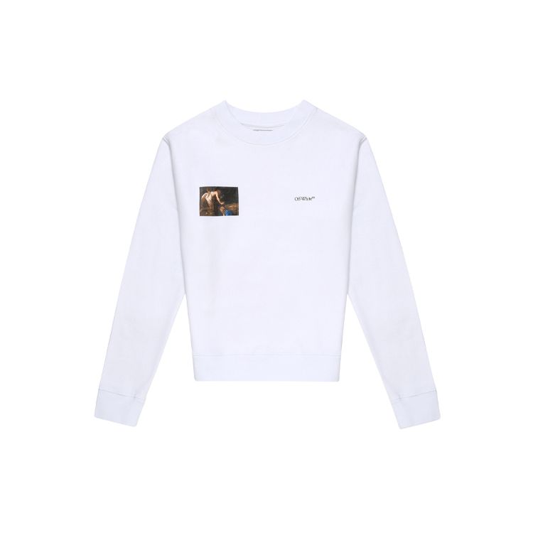 Off-White Белые/черные мужские топы Caravaggio Angel Slim с круглым вырезом OMBA025E20FLE0050110