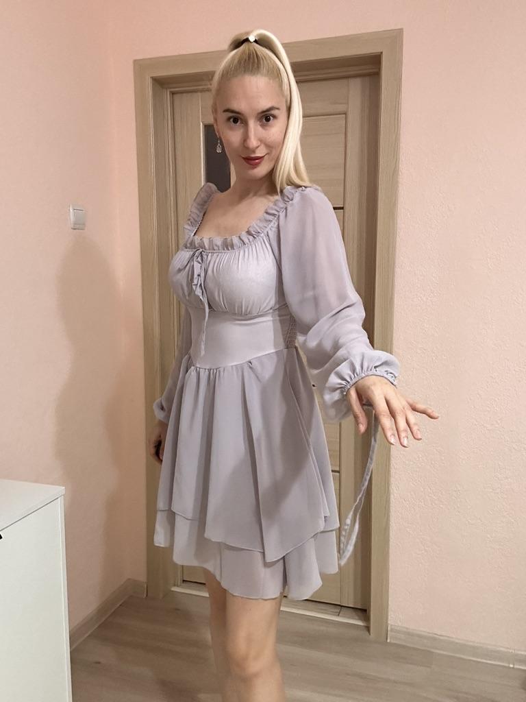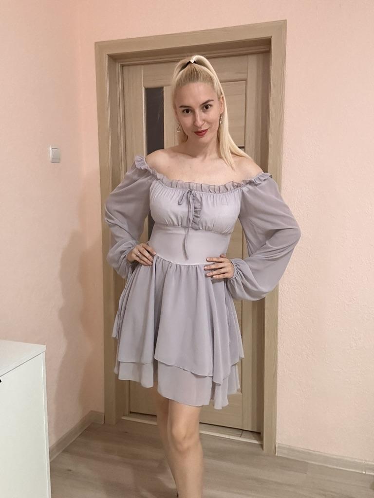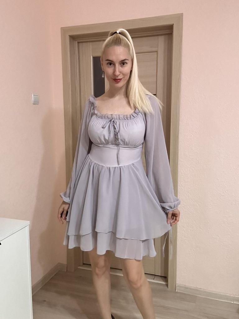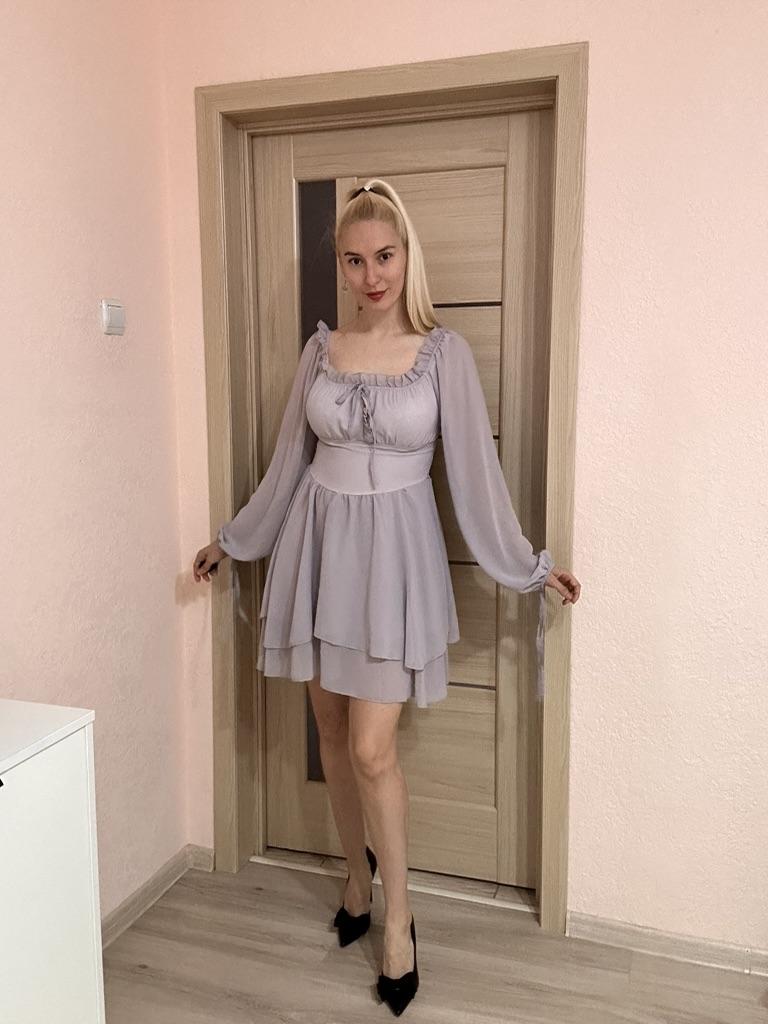платье пришло не того цвета, это слегка расстраивает, но не критично. на фото оно было каким-то нежно фиолетовым или сиреневым, а в жизни голубоватое. на теле сидит даже лучше чем ожидала.