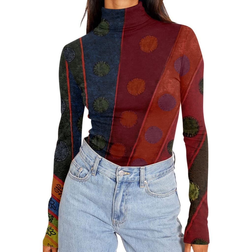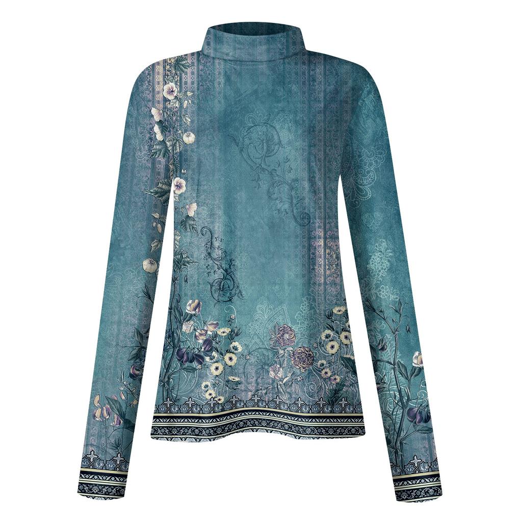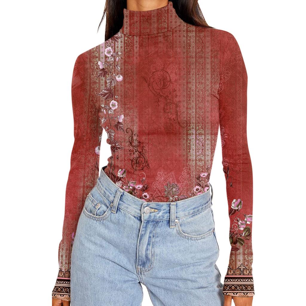 Женские рубашки с высоким воротником и длинными рукавами с принтом, осенние модные базовые облегающие мягкие термотопы