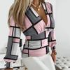 GMXIA Женские модные повседневные осенне-зимние однотонные узкие блузки и рубашки с v-образным вырезом и длинным рукавом с принтом