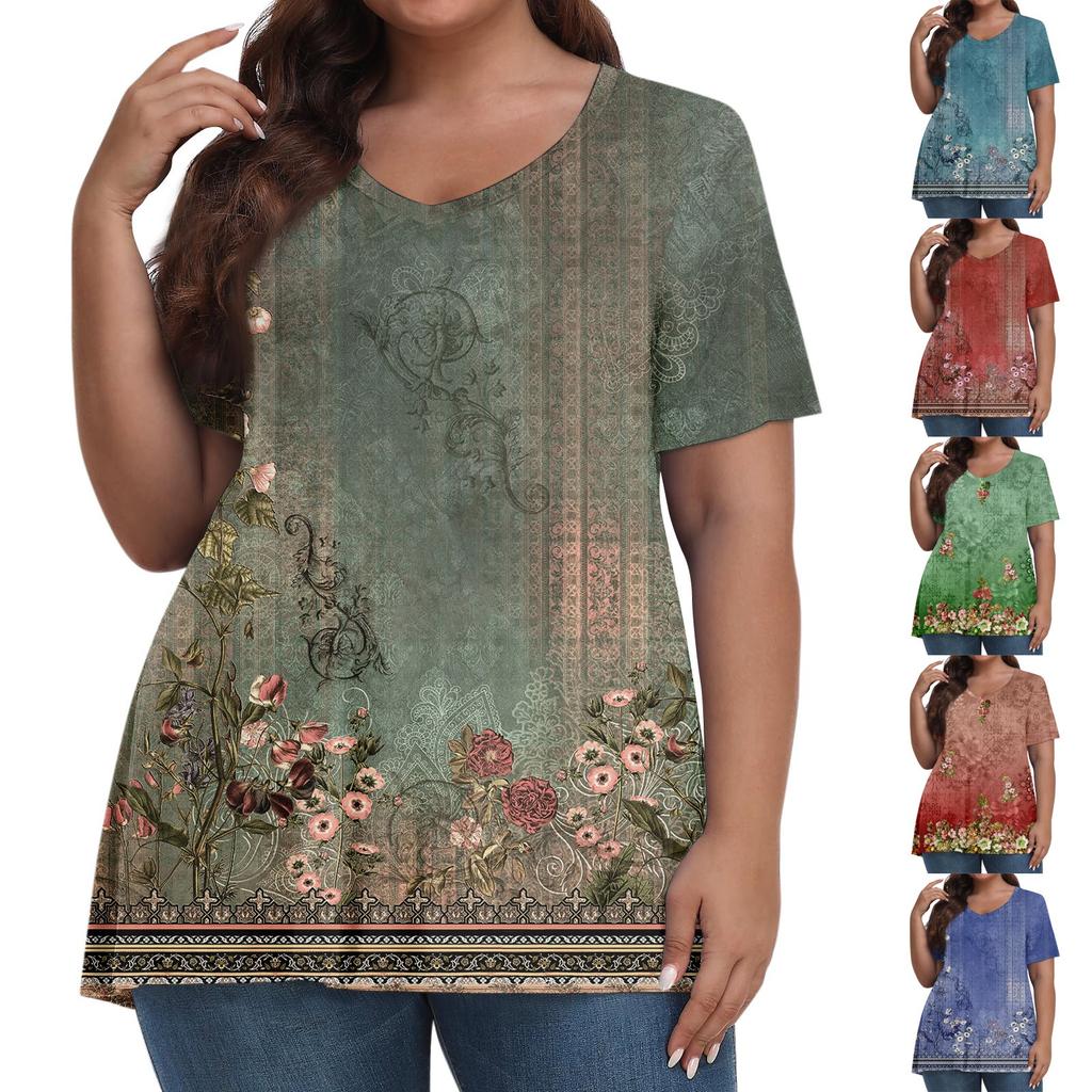 Женские топы больших размеров, шорты с рукавами, рубашки с V-образным вырезом, повседневная одежда, топы с принтом