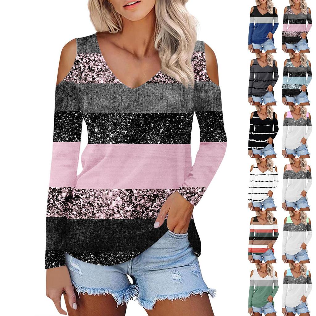 Женская рубашка, блузка, модные повседневные топы с v-образным вырезом и принтом, сексуальные топы с длинными рукавами и открытыми плечами — купить товар онлайн с бесплатной доставкой до всему миру!