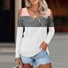 Женская рубашка, блузка, модные повседневные топы с v-образным вырезом и принтом, сексуальные топы с длинными рукавами и открытыми плечами