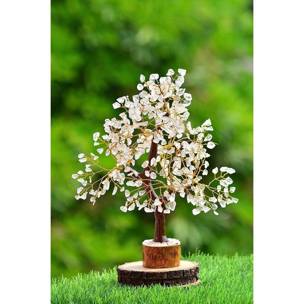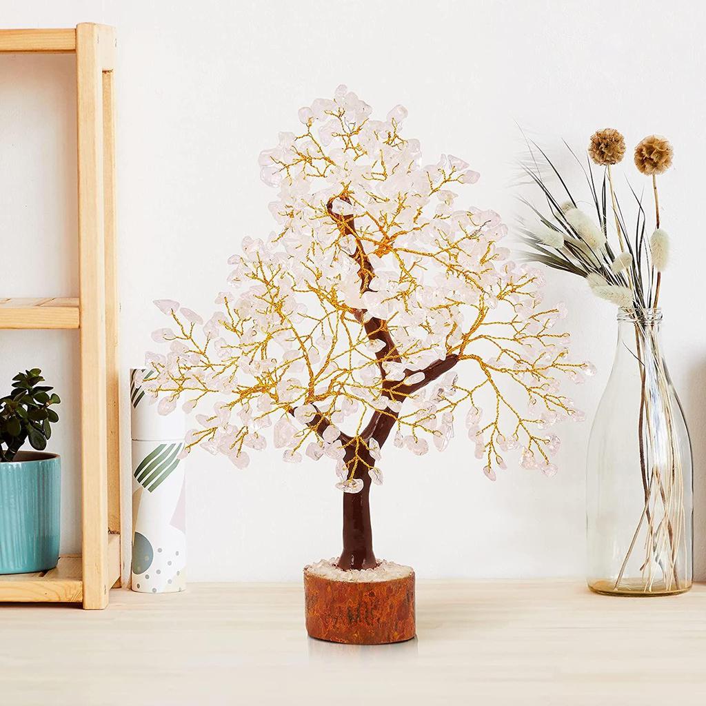 Денежное дерево бонсай из кристалла семи чакр с драгоценными камнями, золотой проволокой и 300 бусинами, стандартный размер - прозрачный кварц, 1 шт.