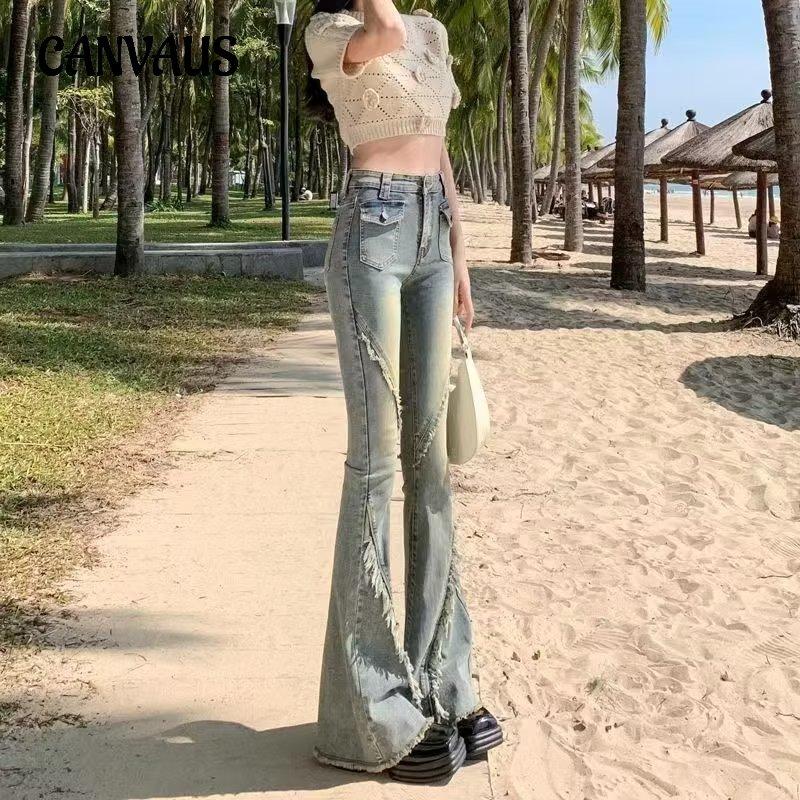 Джинсы Raw Edge Micro Flare. Женские джинсы весенне-осеннего размера, винтажные расклешенные брюки больших размеров.