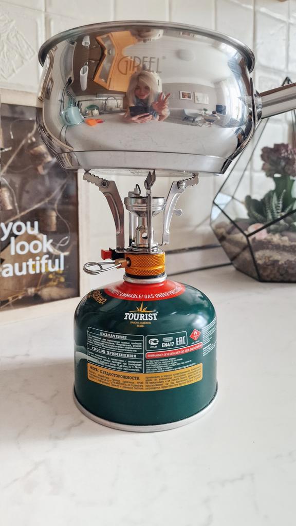 Газовая мини-горелка от магазина Binchi Outdoor Product ❤️ Очень компактное устройство, которое, при наличии газового баллончика, позволит решить вопросы с приготовлением или разогревом пищи в походных условиях. Горелка пришла в пластиковом футляре. Для использования её нужно разложить - привести в рабочее состояние. Горелка подойдёт под баллоны с резьбой. Если использовать баллоны с цанговым соединением, необходимо дополнительно приобрести переходник. Для розжига имеет пьезоэлемент. Удачных покупок ❤️ Ваша Вика 🙂