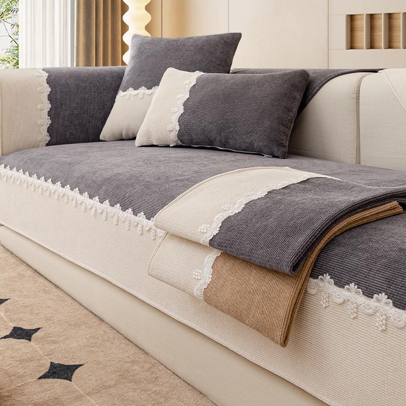 Вельветовая диванная подушка контрастного цвета, универсальная подушка на четыре сезона, Нескользящий чехол для дивана, новинка 2024, чехол, полотенце, одеяло — купить товар онлайн с бесплатной доставкой по всему миру!