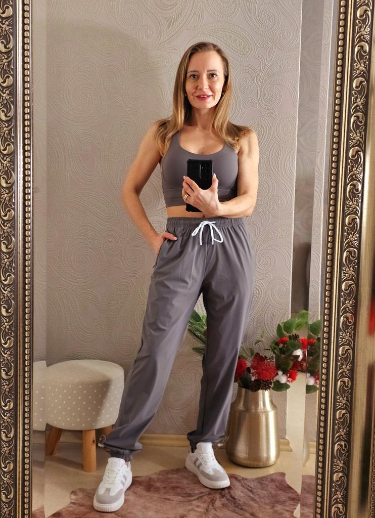 Спортивные брюки Хорошие штаны для занятий на открытом воздухе. Хотя и дома я сделала несколько упражнений, и чувствовала себя довольно комфортно. Брюки на резинке, с дополнительным шнурком в талии, классического прямого покроя, стянуты снизу резинкой, дополненной декоративной кулиской, то есть модель типа джогеров. Имеются боковые врезные карманы на молнии. Сзади на бёдрах кокетка, благодаря которой брюки красиво садятся на бёдрах. Ткань приятная - типа смесовой тонкой плащевки. Сама ткань не тянется, практически не мнется, не электризуется и не просвечивает. Прошито аккуратно. Размерная сетка продавца занижена на два размера. Так, заказанный мной размер L соответствует S-ке. Мои параметры ОТ/ОБ 64/91 см, рост 150 см. Замеры вещи: резинка в талии 64 см, бедра 94 см, глубина посадки 31 см, ширина штанины в бедре 54 см, резинка внизу 21 см, длина по внутреннему шву 68 см, длина по наружного шву 93,5 см. Брюки подошли очень хорошо, но на более высокий рост будут коротки. У меня штанв сидят точно на талии. За счет резинок они приподнимаются, но следов на ногах не оставляют. Брюками осталась очень довольна. Личный промокод на скидку 5% на любые товары joom: GTQ8JLRYPB. Переходите в мой телеграм-канал followmekanal за актуальными промокодами.