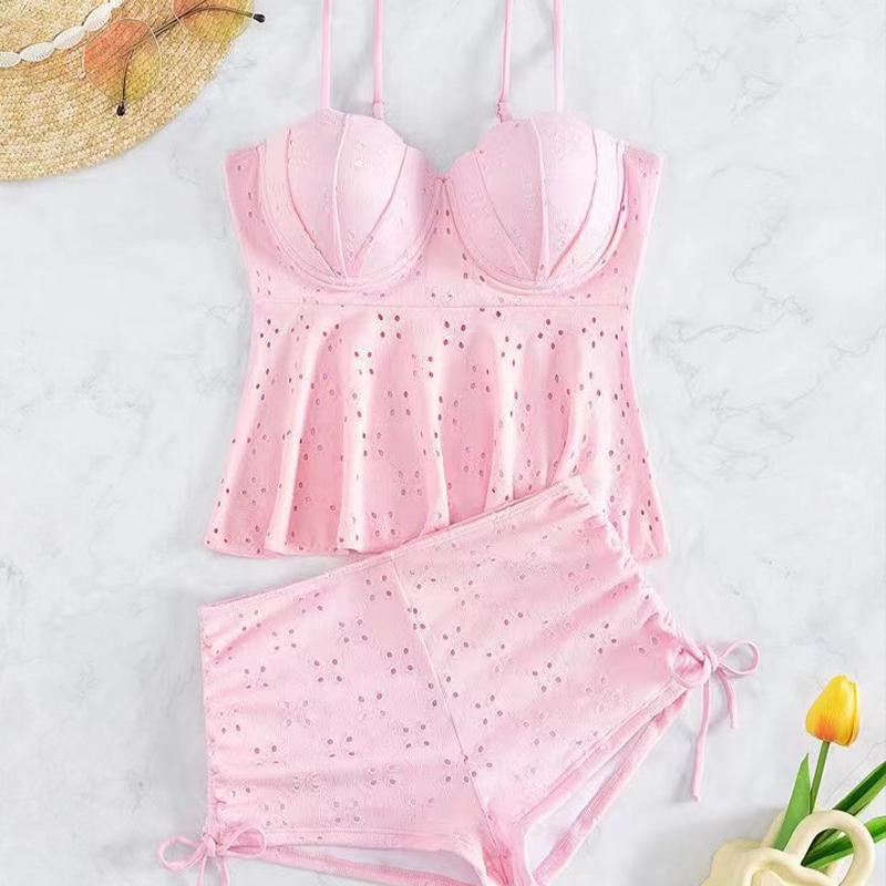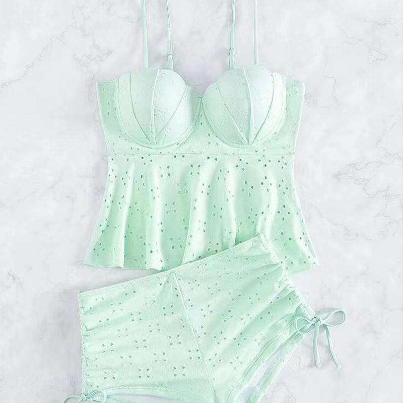Летний женский ажурный однотонный купальник бикини пуш-ап с высокой талией купальный костюм пляжная одежда купальный костюм