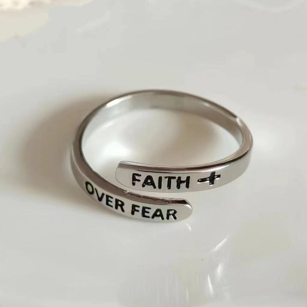 Кольцо с геометрическим крестом из нового европейского и американского сплава, кольцо «Вера преодолевает страх», регулируемое открывающееся кольцо