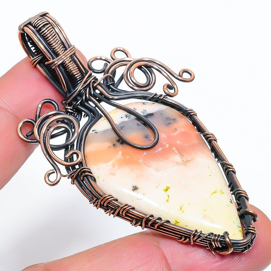 Подвеска из медной проволоки ручной работы из натурального меда с дендритным камнем 2,76 дюйма C9m68