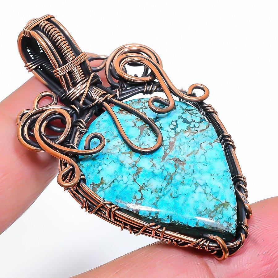 Подарочный кулон из медной проволоки с натуральным тибетским бирюзовым камнем 2,29 дюйма k2q35 — купить товар онлайн с бесплатной доставкой по всему миру!