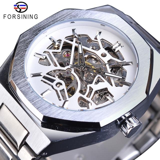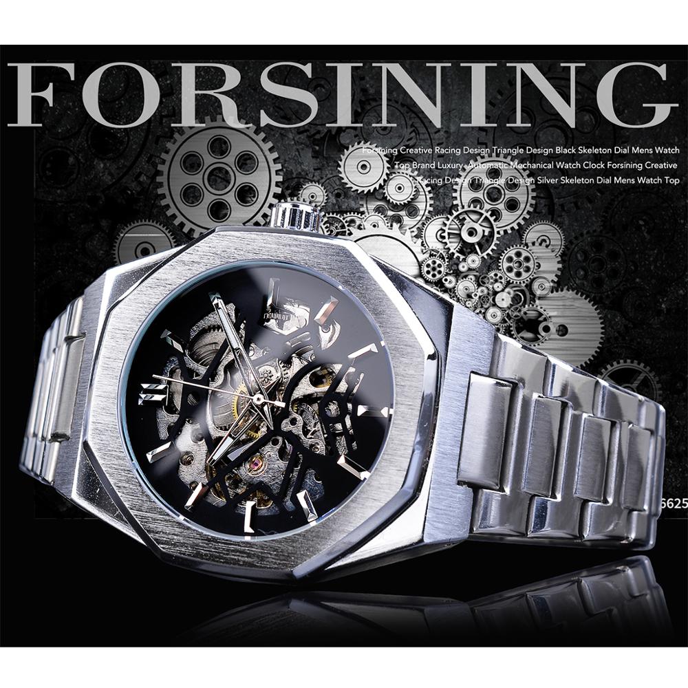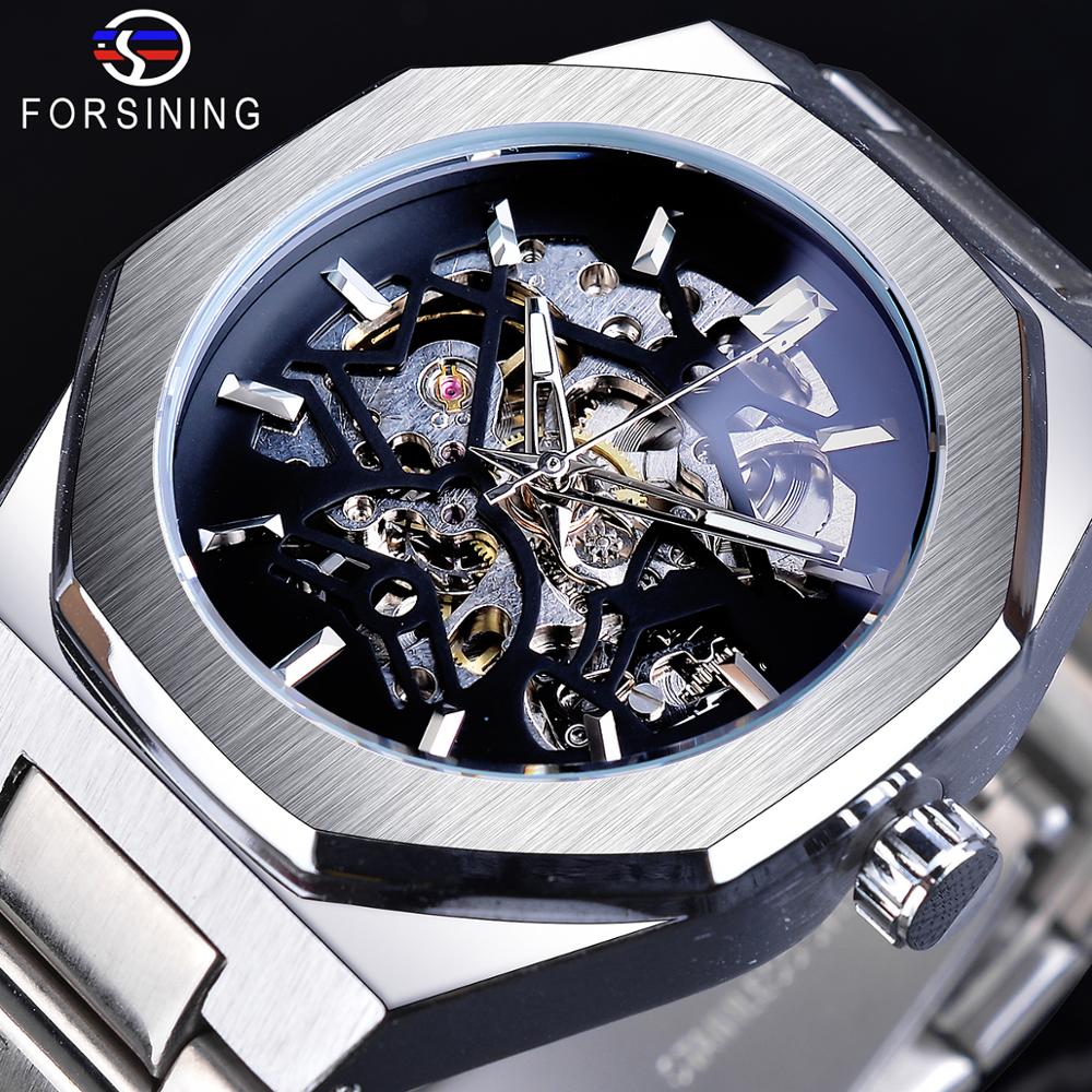 Forsining модные стимпанк роскошные мужские автоматические механические часы с черным циферблатом водонепроницаемые наручные часы со скелетом Relogio