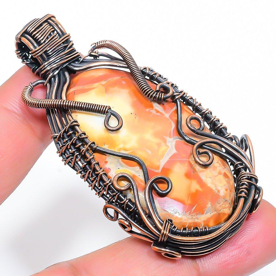 Подвеска ручной работы из медной проволоки с натуральным драгоценным камнем малинга яшма 2,56 дюйма d0V59